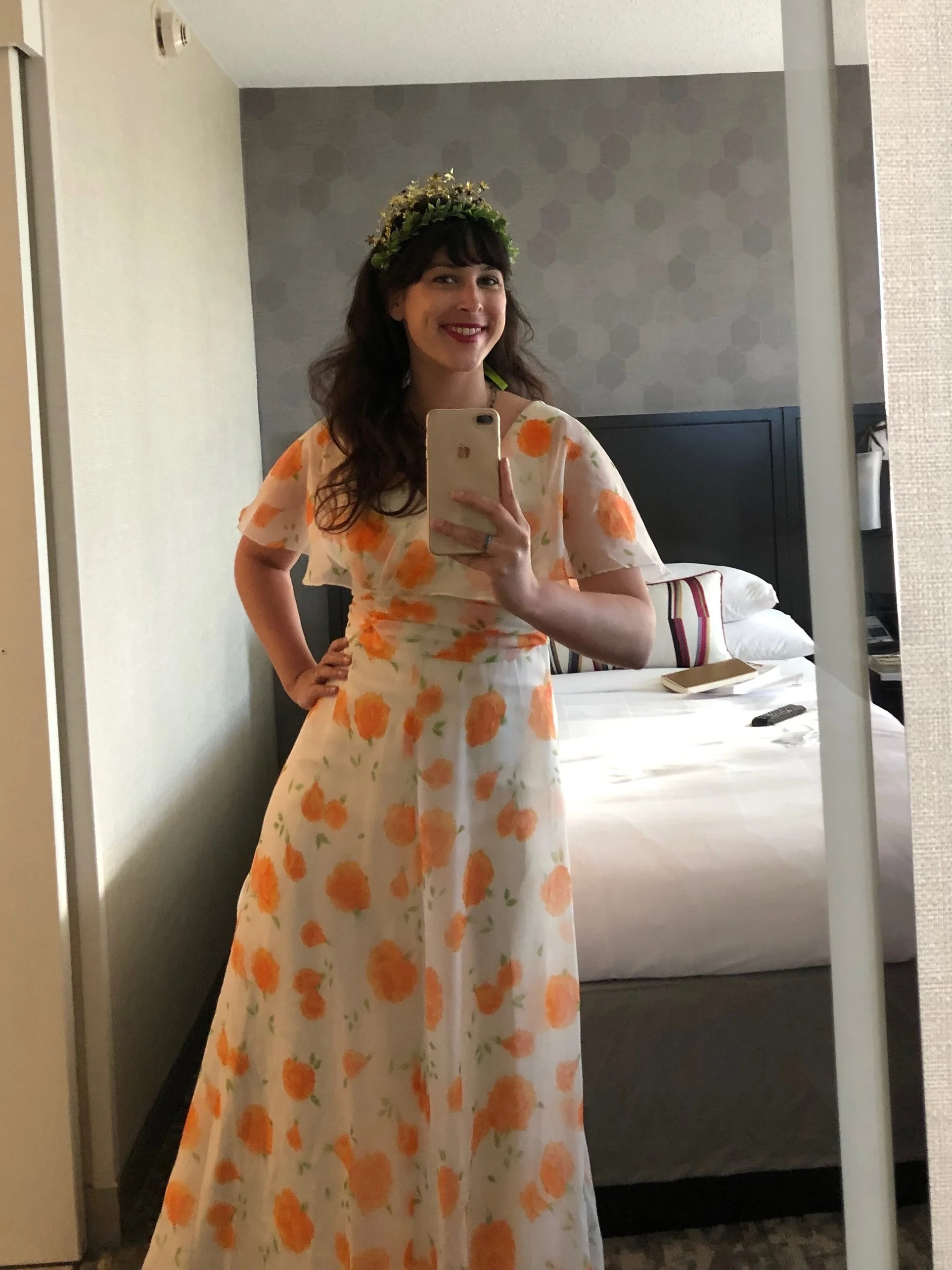 In retrospect, I wouldn’t do this again, since my half-asleep self sat down at the first available seat only to realize that, as the crowd filtered in, I was sitting at the “big girl’s table.” It took all my limited energy not to fangirl too hard as modern greats like Benebell Wen, Ethony, and Theresa Reed sat down around me! I like to think that, with a little extra sleep, I’d have been the paragon of dignity and professionalism… but, probably not.